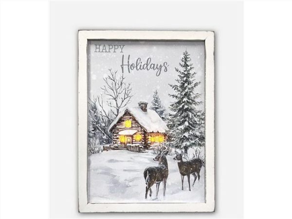LED Framed Wall Art - Deer & Cottage 12x16"